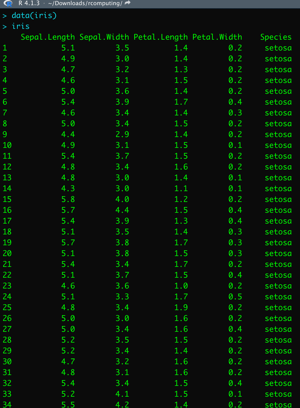 R에 기본적으로 내장된 내장 데이터 세트가 있다 대표적인 것이 iris다